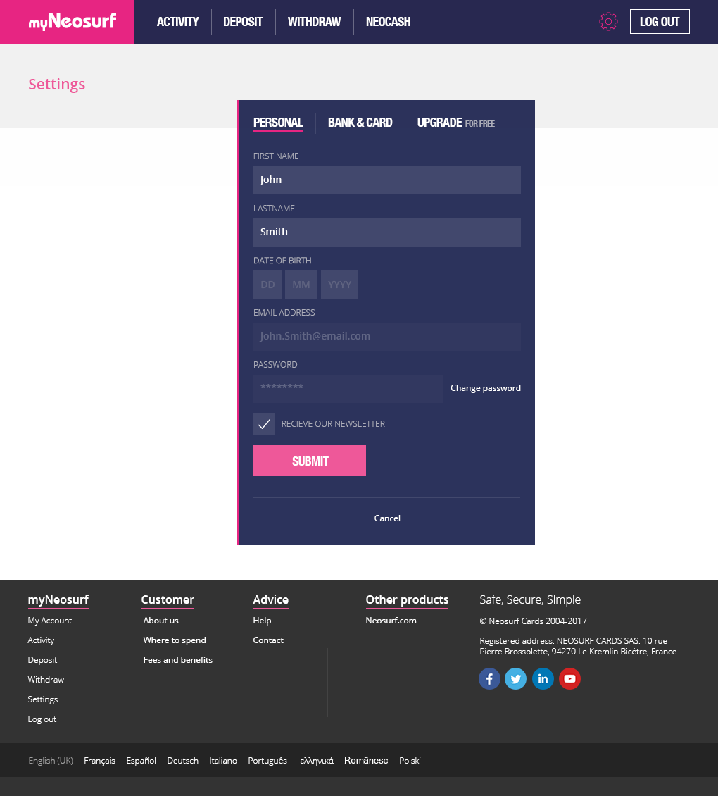 myNeosurf Account