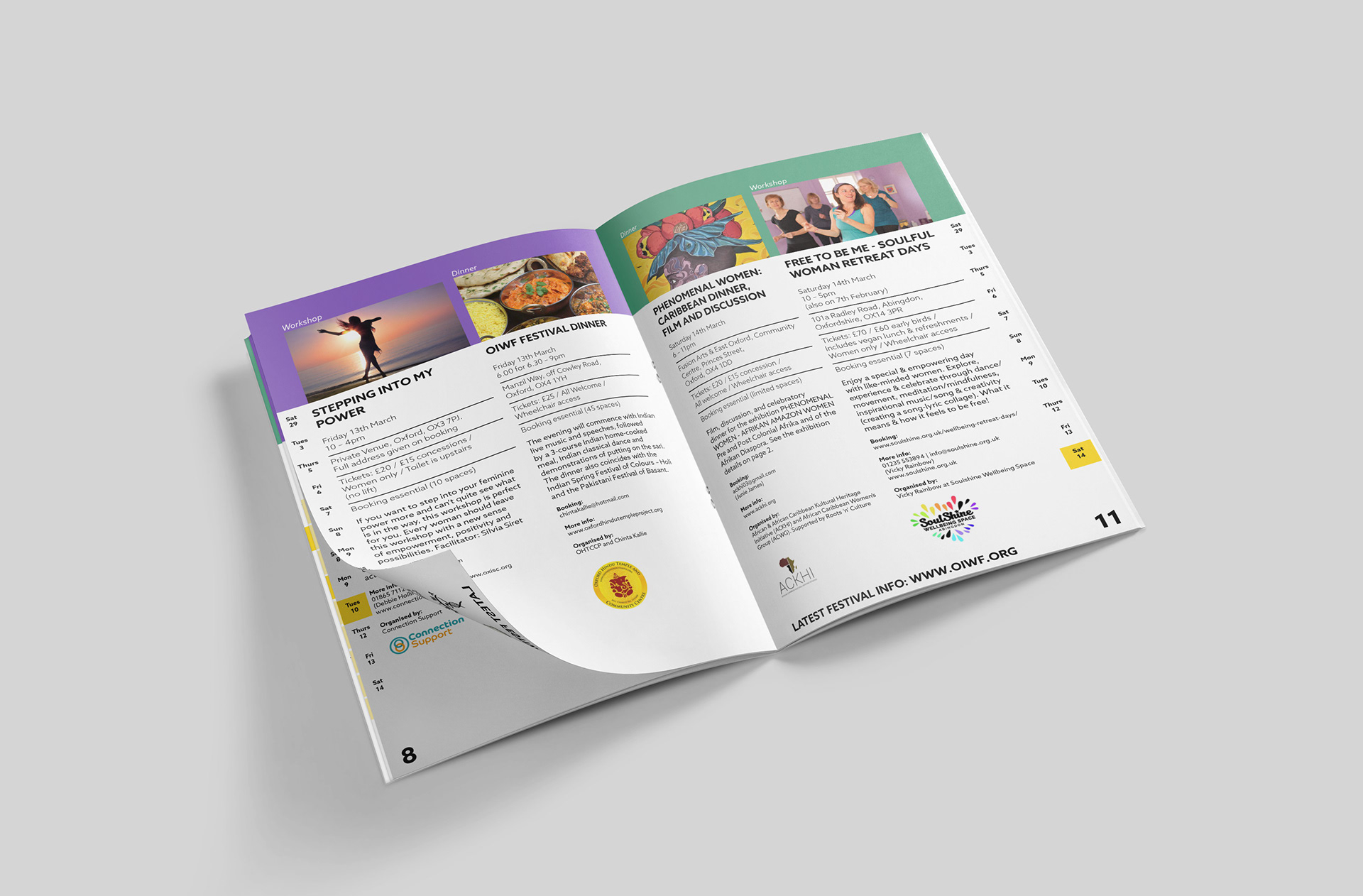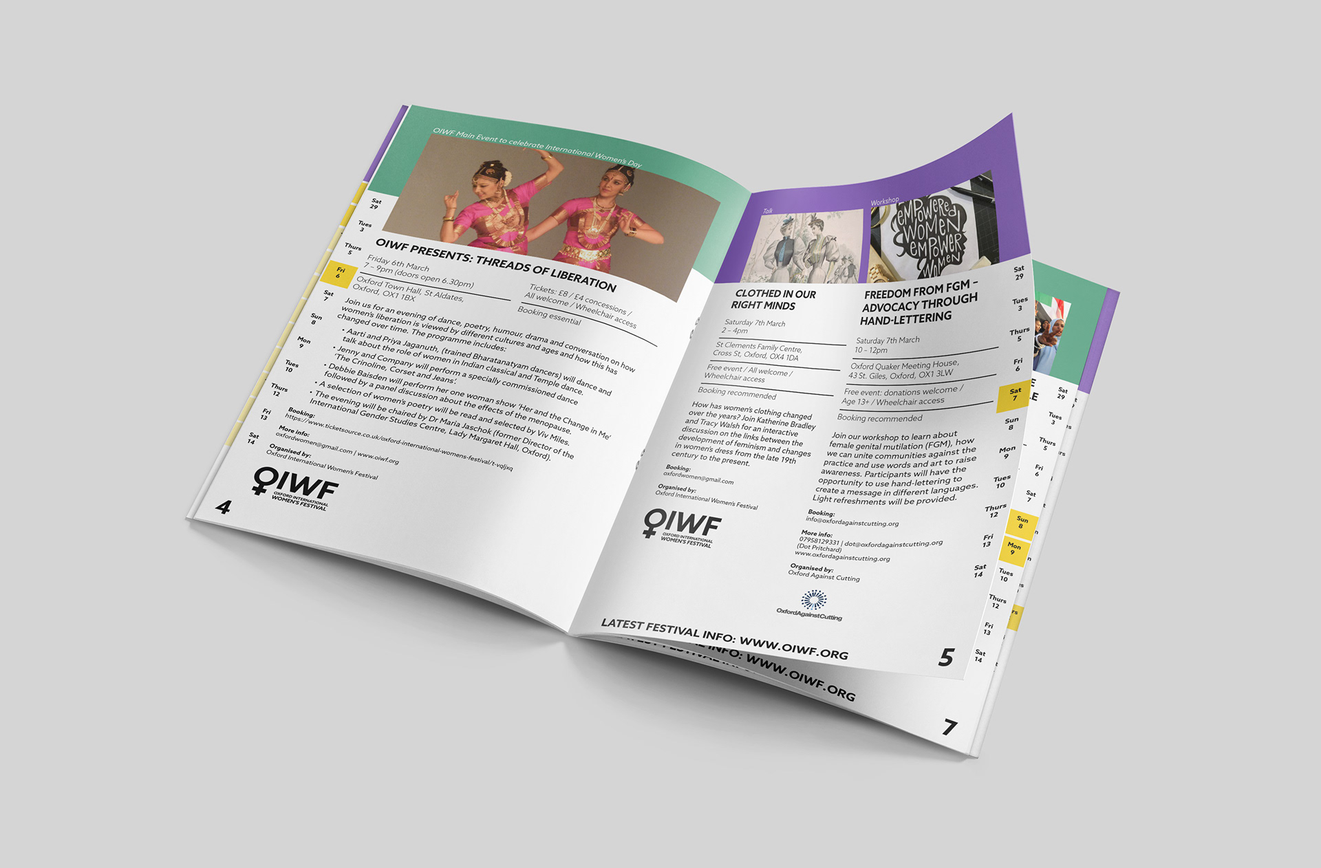 Oxford International Women's Festival is an annual festival set in Oxford, hosting international speakers. This A5 programme of events was designed to complement the website, and was available for free in shops and businesses in and around Oxford along with a downloadable version on the OIWF website. Year: 2019-2020 | Role: Design