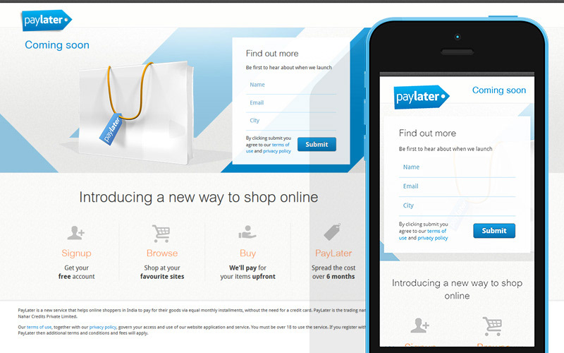 Site design for PayLater, an e-commerce loans company. Year: 2013 | Role: UX/UI Design